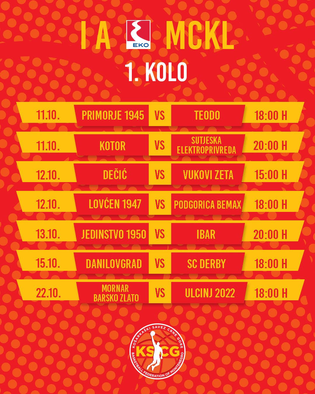 Ovog vikenda počinje takmičenje u I A MCKL, a utakmice 1. kola igraće se od subote do srijede, dok je jedan meč odložen za 22. oktobar.
