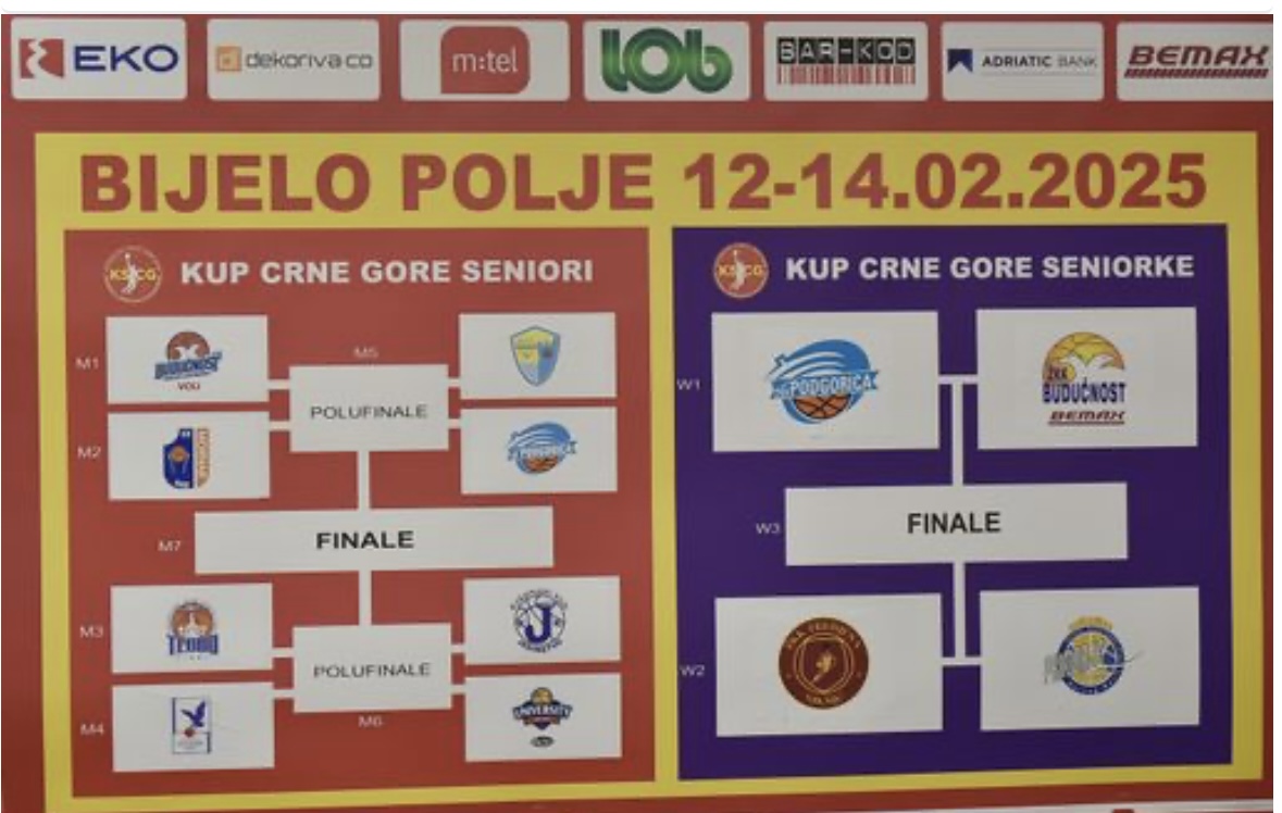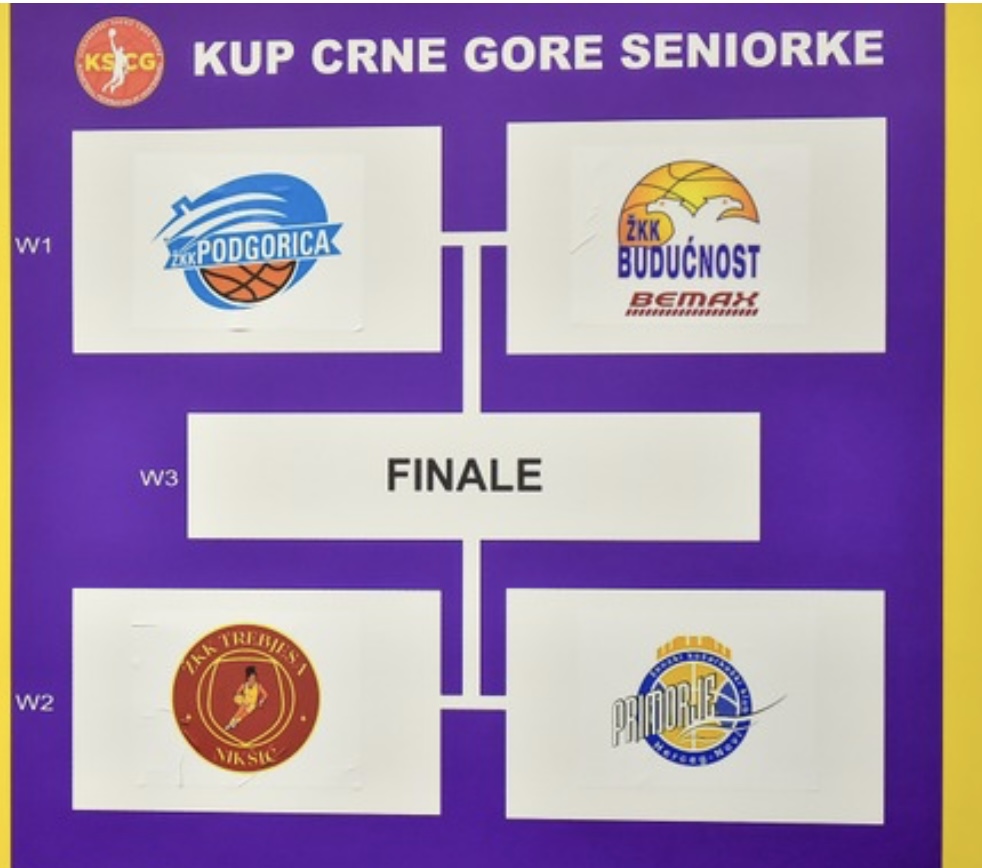 Voljom žrijeba u okviru polufinala sastaju se Podgorica - Budućnost Bemax, a taj meč počinje u 15:30 časova, dok od 13 časova igraju Trebjesa – Primorje.