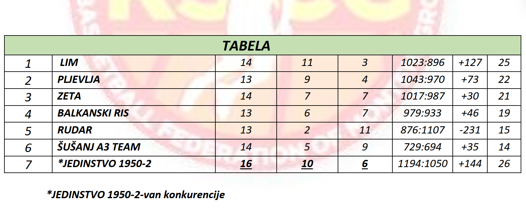 Lim je lider na tabeli sa 11 pobjeda i 3 poraza, to jest dvije pobjede više od drugoplasirane ekipe Pljevalja, koja ima i utakmicu manje, ne računajući duele sa drugim timom Jedinstva koji se takmiči van konkurencije. Ukoliko Beranci u subotu savladaju Rudar, obezbijediće prvo mjesto i plasman u Prvu A ligu, već uoči posljednjeg kola, u kojem svakako igraju sa Jedinstvom, a taj rezultat se ne računa za plasman na tabeli.