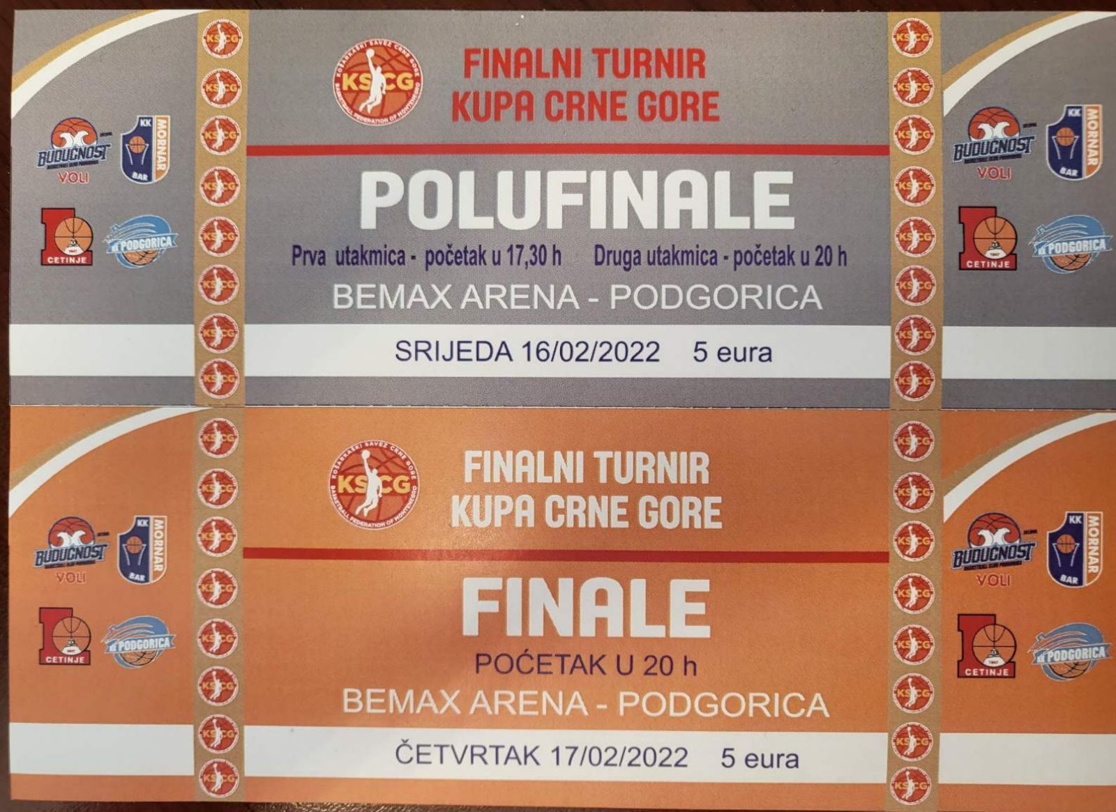 Ulaznice se mogu kupiti u prostorijama Košarkaškog saveza Crne Gore u ponedjeljak i utorak od 9 do 16 sati, a u srijedu od 9 do početka prvog meča (17:30h), kao i u četvrtak od 9-16h.