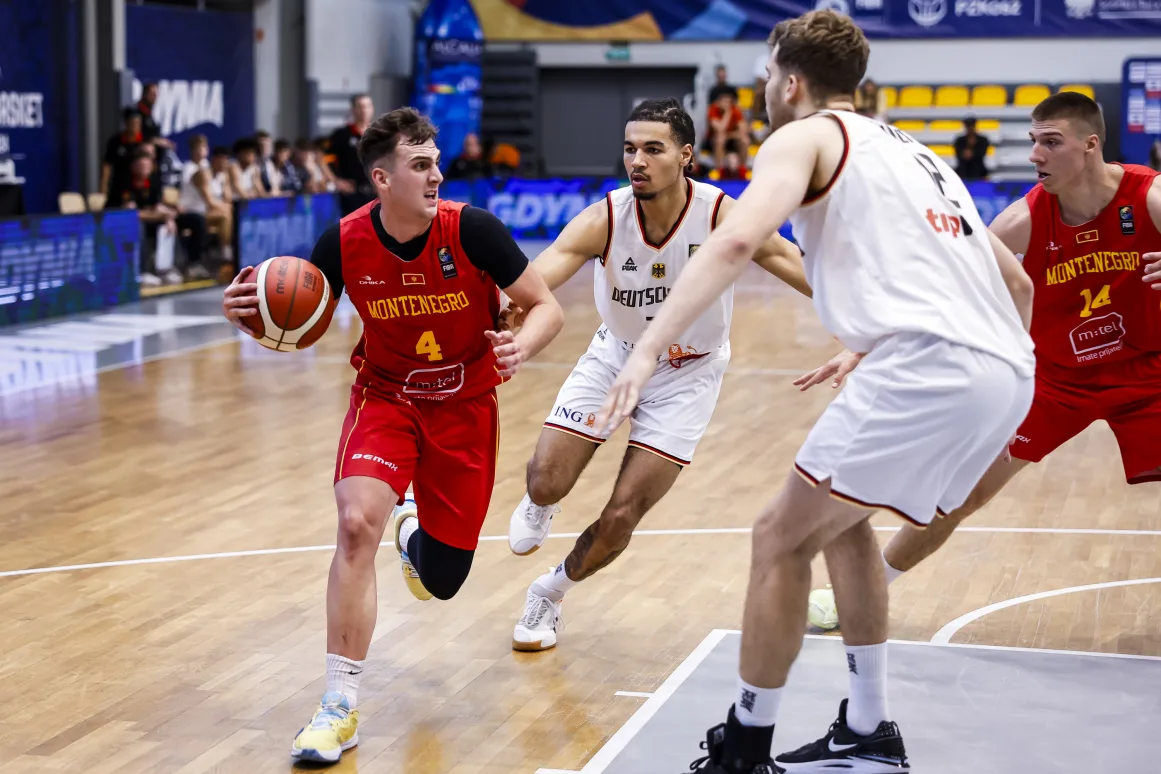 Mlada muška košarkaška reprezentacija poražena je danas od Njemačke 86:58 na startu razigravanja od 9. do 16.mjesta na šampionatu Evrope u Poljskoj. Ovim porazom Crnoj Gori do kraja prvenstva slijedi borba od 13. do 16.mjesta, a u dva posljednja meča našoj reprezentaciji biće potrebna dva trijumfa kako bi izborila opstanak u A diviziji.
