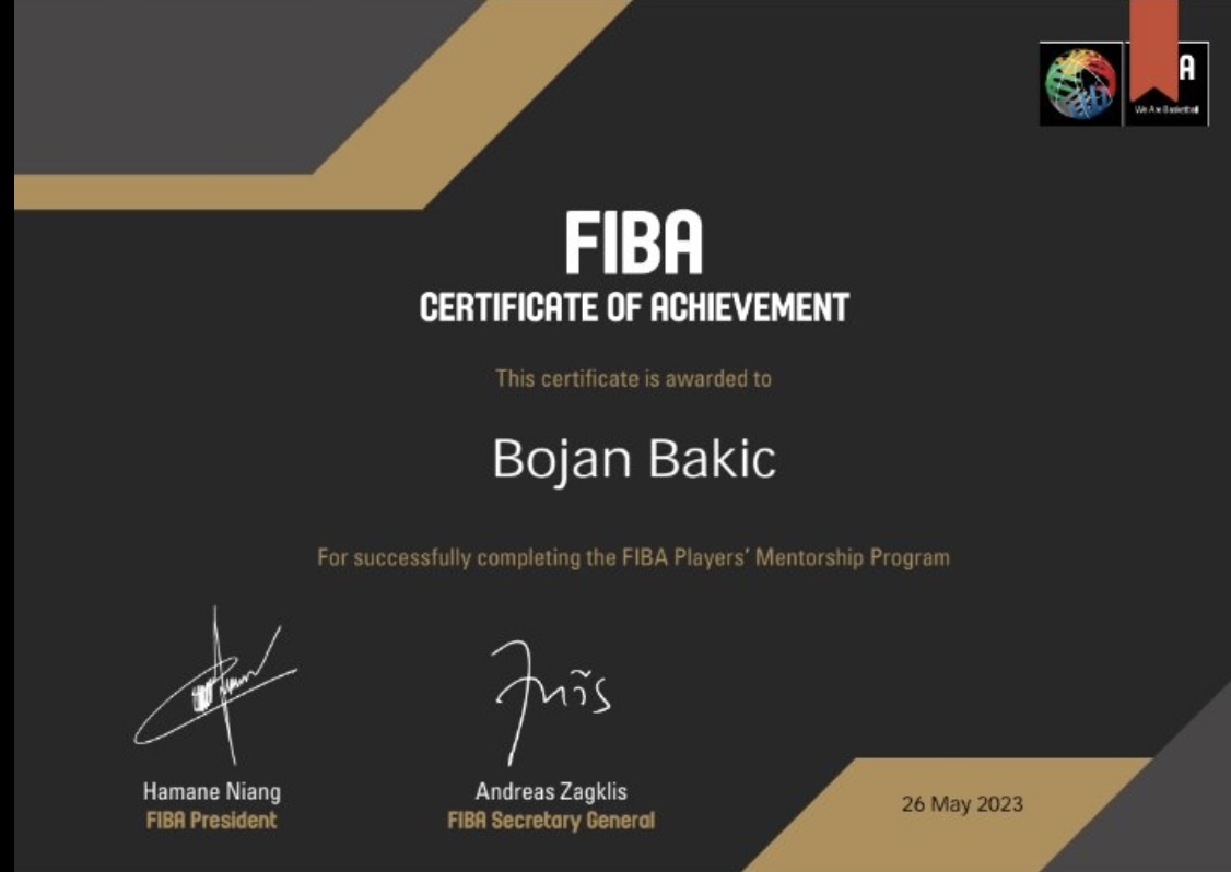 Selektor pionirske reprezentacije Crne Gore, Bojan Bakić, dobio je FIBA sertifikat za uspješno završen program mentorstva za igrače.