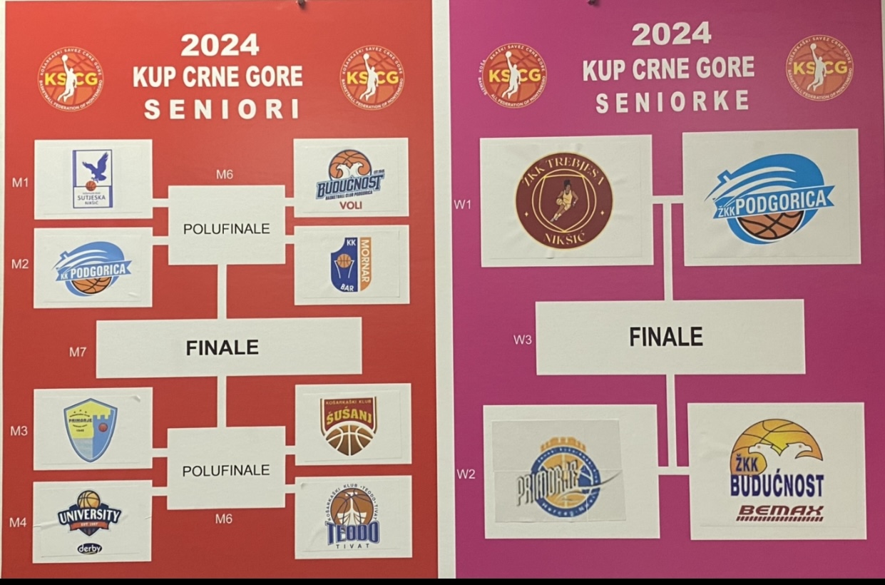 Voljom žrijeba u okviru polufinala sastaju se Trebjesa – Podgorica, a taj meč počinje u 13 časova, dok od 15.30 časova igraju Primorje – Budućnost Bemax.
