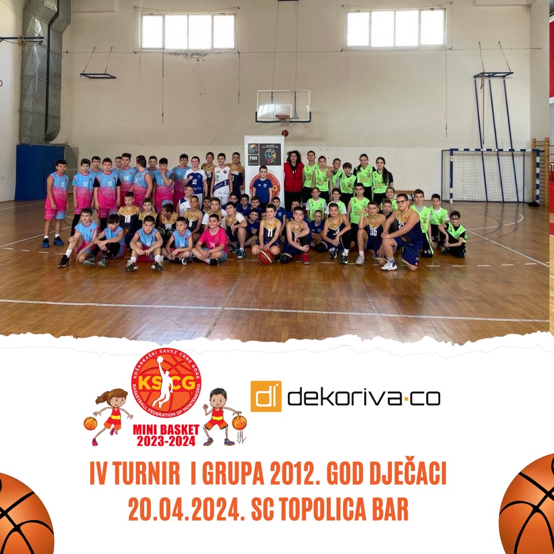 U subotu se igra četvrti turnir I grupe za dječake 2012.godište. Turnir se održava u Baru, u dvorani SC "Topolica", a odigraće se ukupno 8 utakmica.