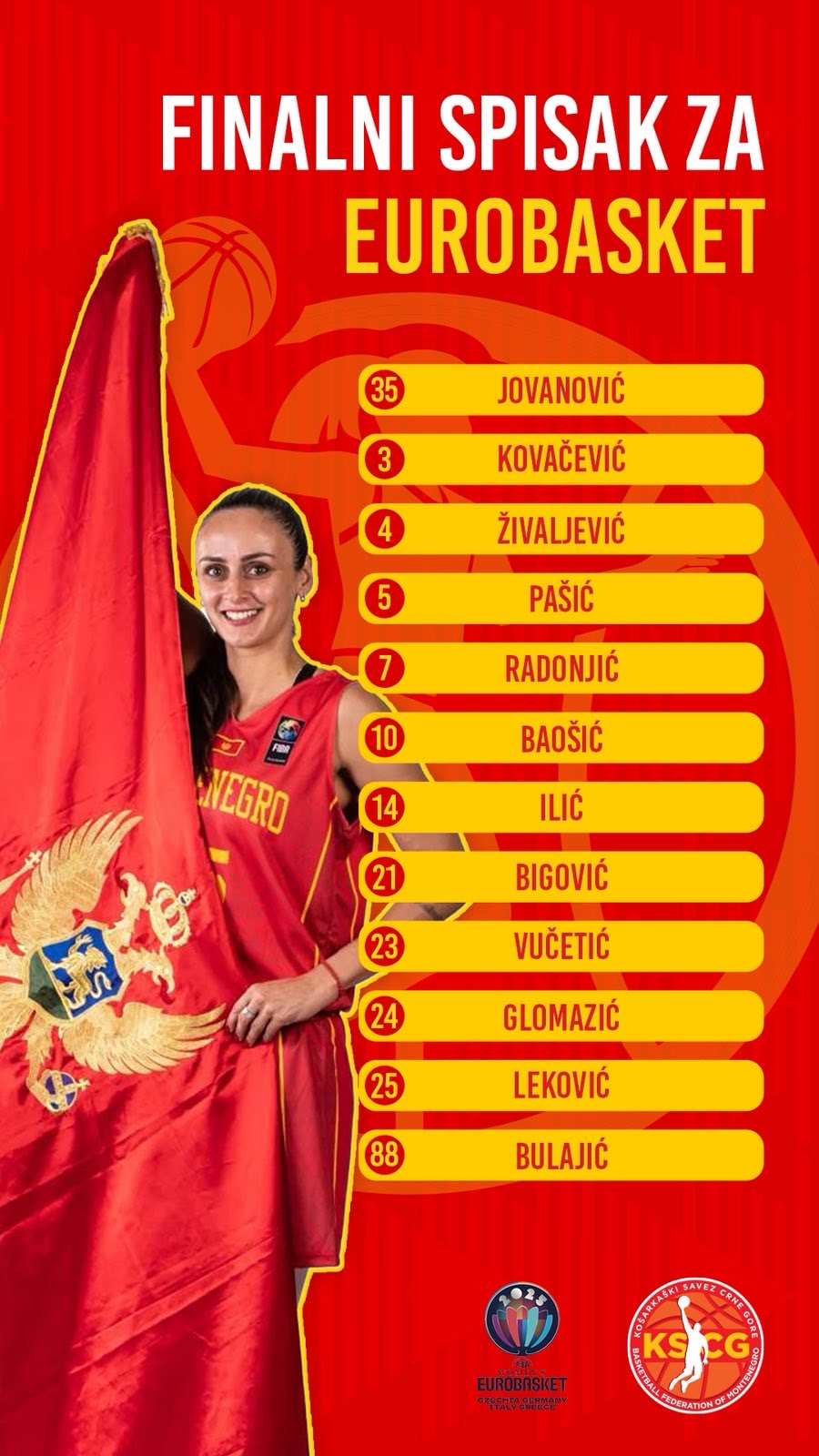 Tokom priprema naša selektorka mogla je da računa na 15 igračica, a uoči posljednjeg treninga odlučeno je da na Eurobasket neće ići trio iz Budućnost Bemaxa: Atina Radević, Milena Bigović i Jovana Savković.